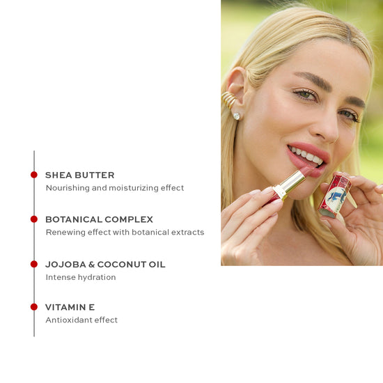 Dudaklara yoğun nemlendirme, yumuşaklık ve doğal bir parlaklık sağlayan besleyici, renkli dudak bakım kremi.