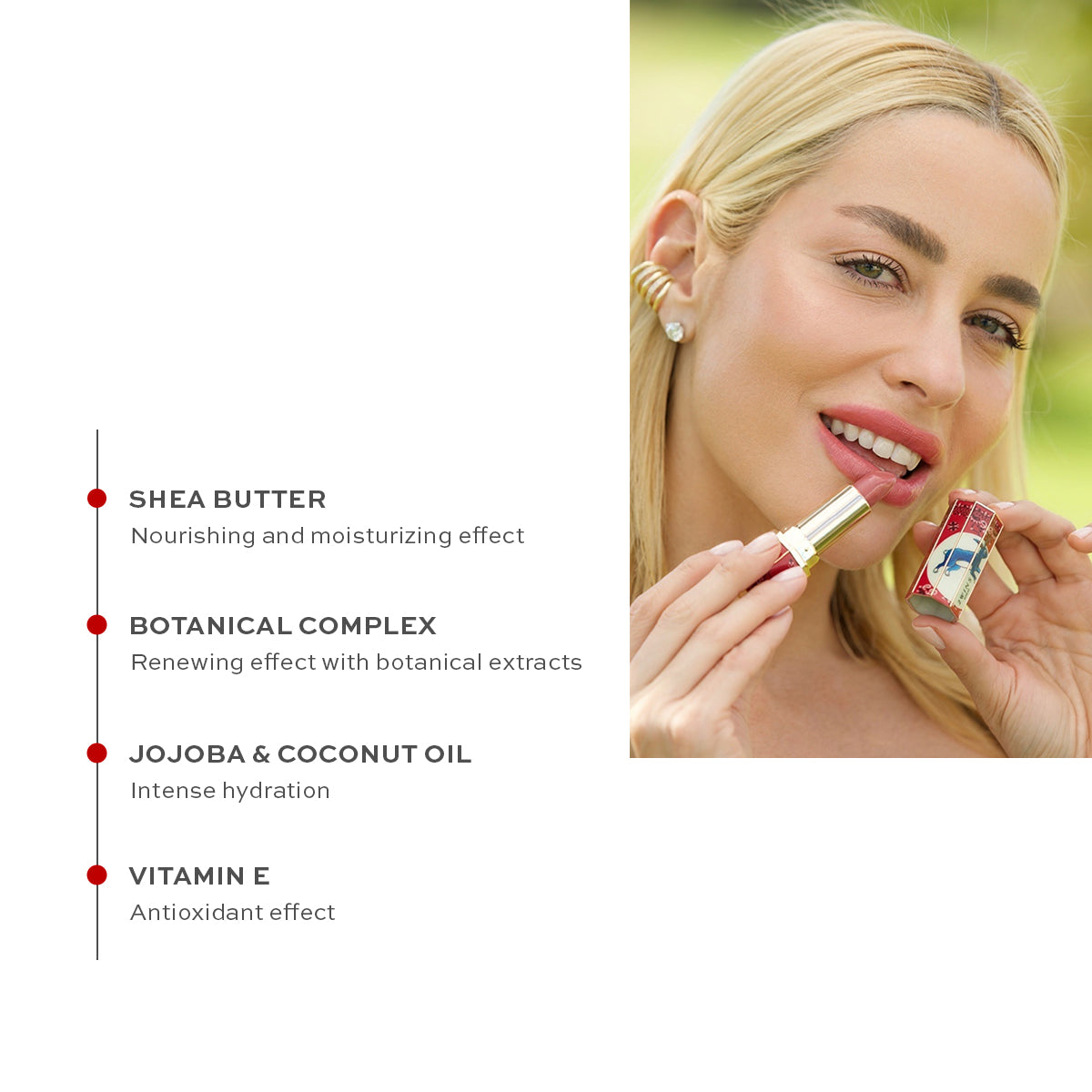 • Dudakları nemlendirerek pürüzsüz ve eşit bir görünüm sağlar.